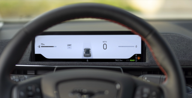 The fully digital driver display offers real-time performance data, navigation instructions, and battery status, ensuring that essential information is always within easy view. Over-the-air updates keep the Mach-E’s software up to date, introducing new features and improvements without requiring a visit to the dealership.